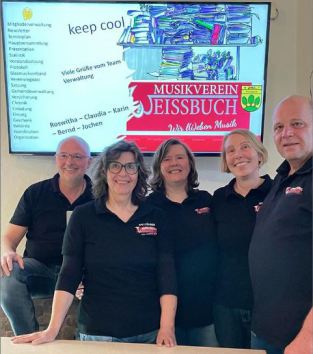 Wir, das sind Roswitha (aktiv seit 2018/Saxophon), Claudia (aktiv seit 2018/Tenorhorn), Karin (aktiv seit2023/Klarinette und Saxophon), Bernd (aktiv seit 1973/Es-Bass) und Jochen (aktiv seit 1973/Posaune).