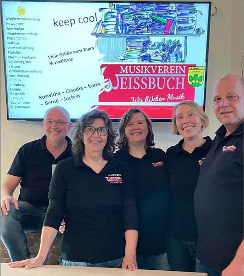 Wir sind verantwortlich für die Mitgliederverwaltung, Newsletter/Einladungen, Vereinsregister/satzung, Hauptversammlung, Vorstandssitzungen und halten den Kontakt zu anderen Vereinen und Behörden (Blasmusikverband, Gemeindeverwaltung, Versicherung, Amtsgericht, ....)